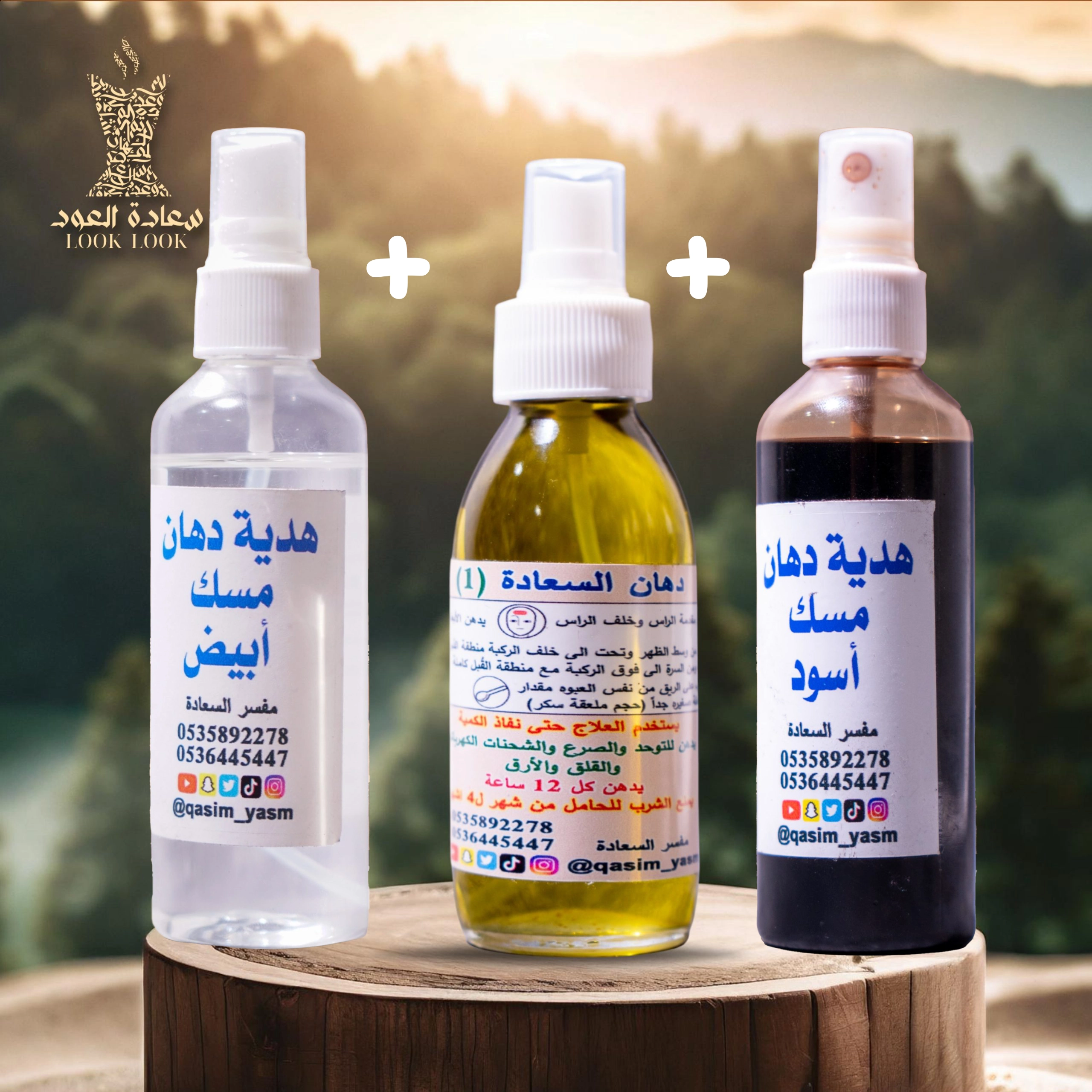 زيت السعادة (1) + 16 تولة مسك أسود & 16 تولة مسك أبيض مجانا ( عرض محدود )