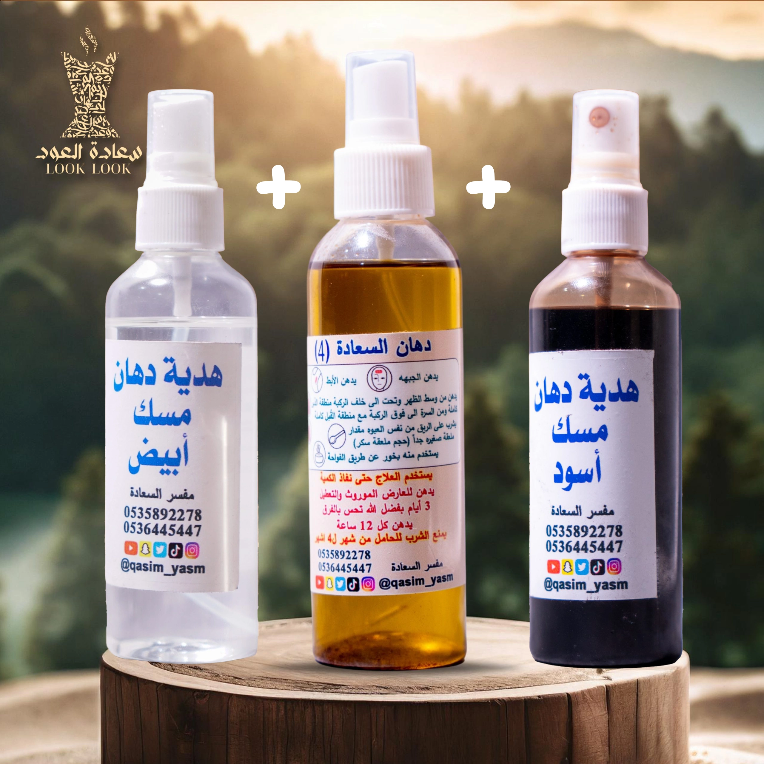 زيت السعادة (4) + 16 تولة مسك أسود & 16 تولة مسك أبيض مجانا ( عرض محدود )